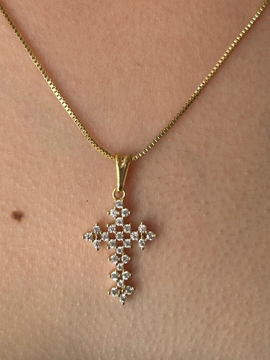 Corrente com pingente Cruz Cravejado de Pedras Banhado a Ouro 18k
