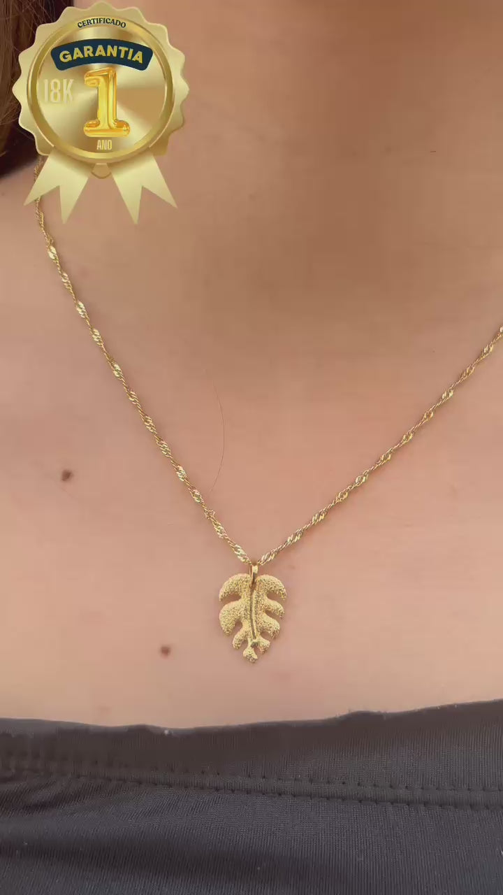 Corrente com Pingente Folha Costela de Adão Banhado a Ouro 18k