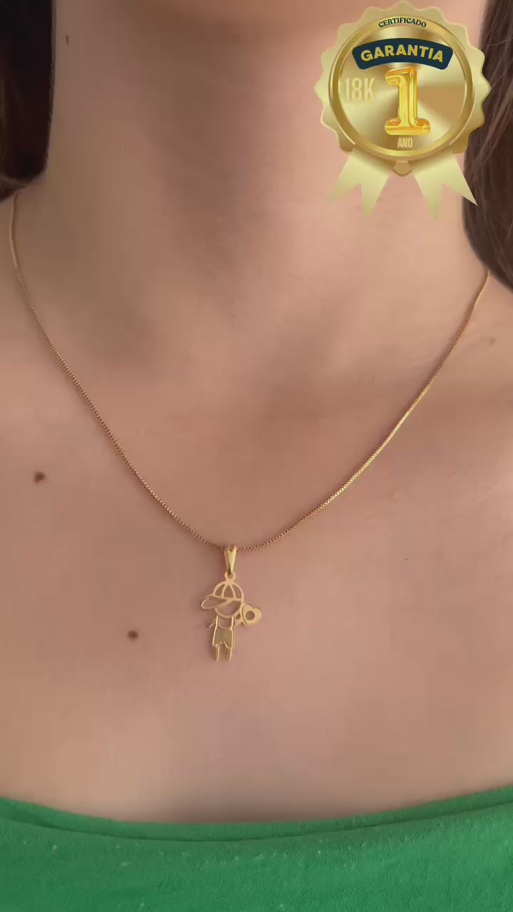 Corrente com Menino Pingente Feliz Banhado a Ouro 18k