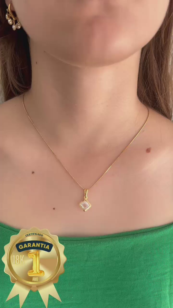 Corrente com pingente Pedra Retangular Banhado a Ouro 18k
