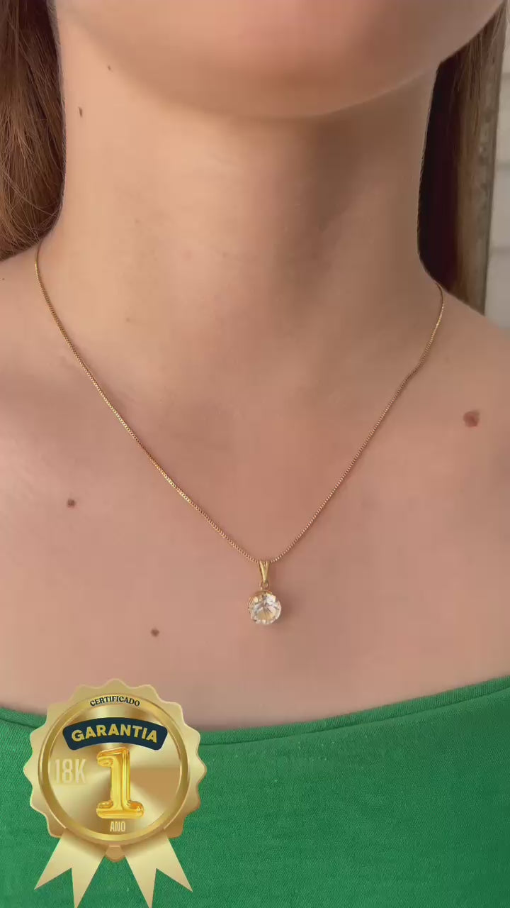 Corrente com Pingente Solitário Banhado a Ouro 18k