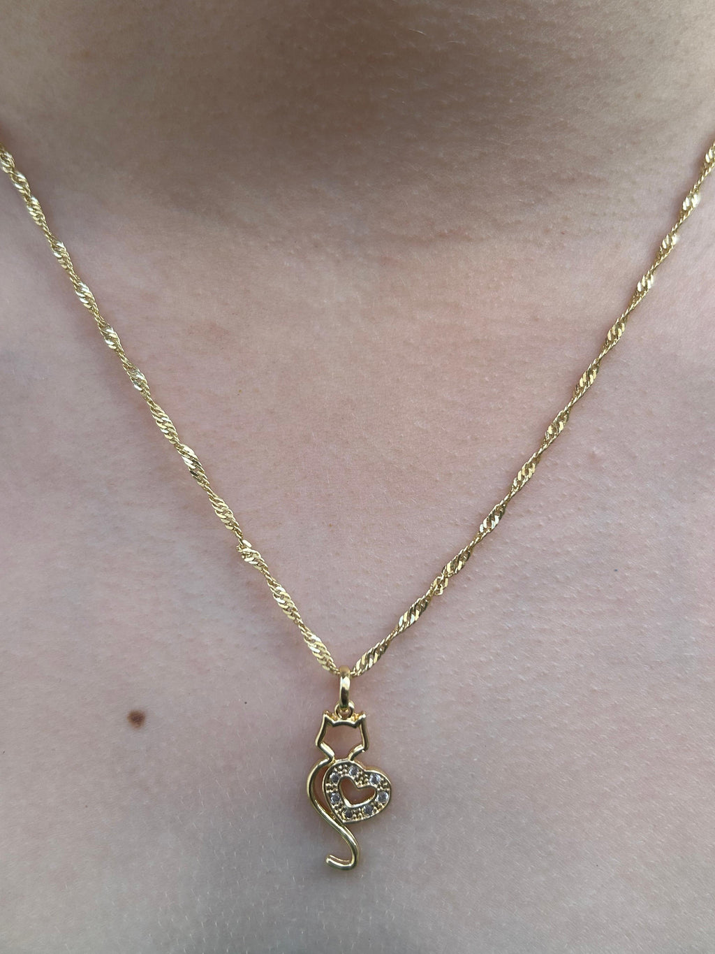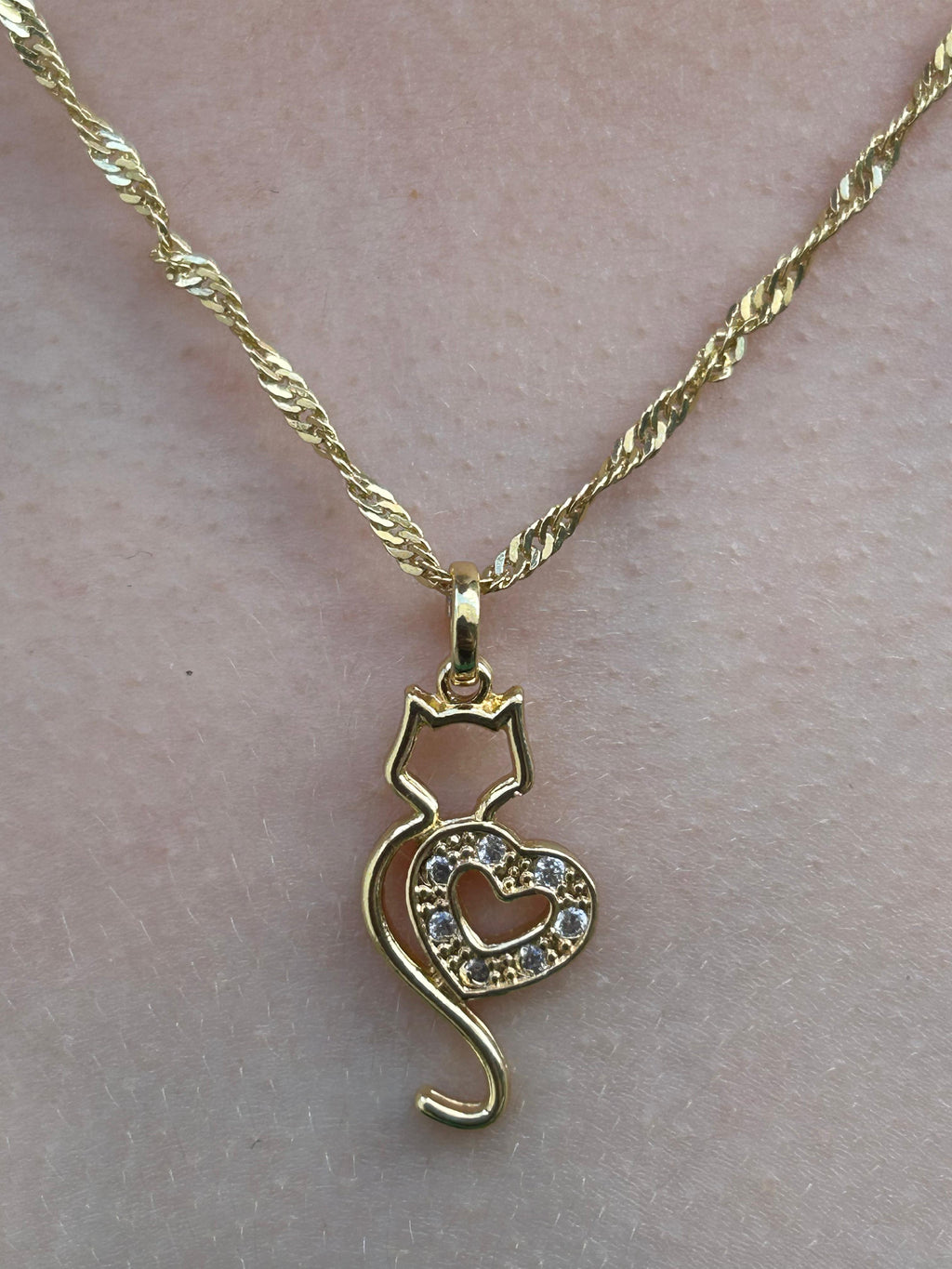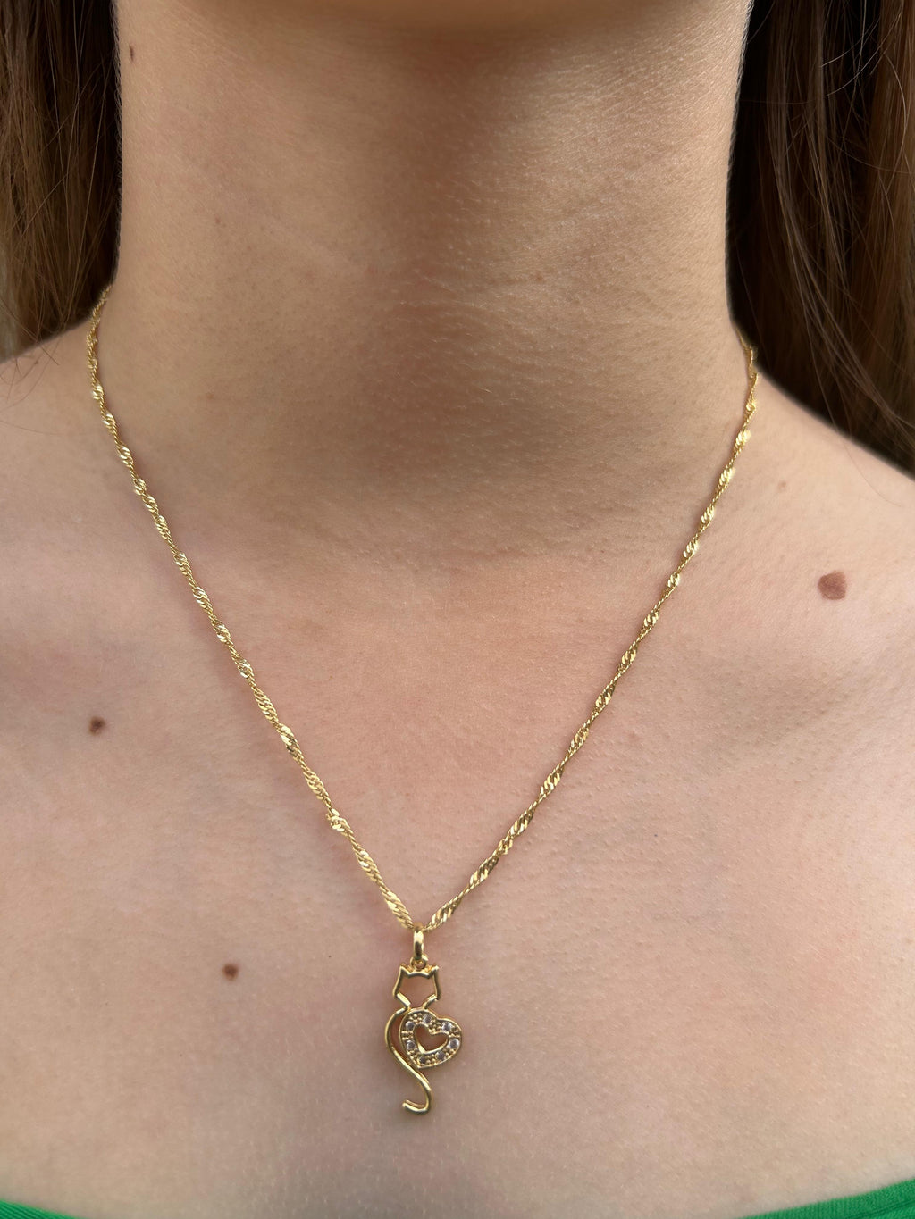 Corrente Pingente Gatinho com Zircônia Banhado a Ouro 18k