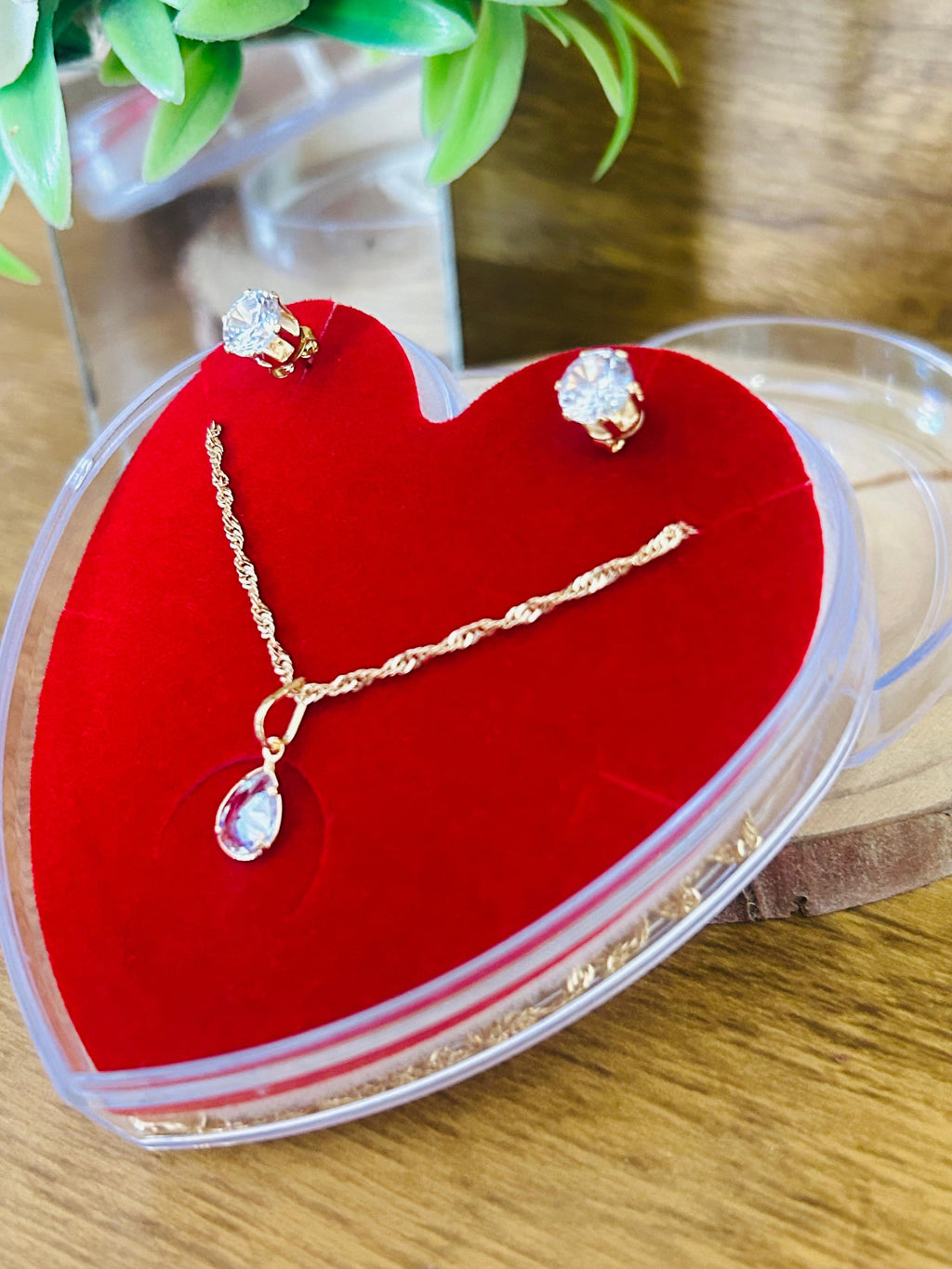 Conjunto delicado com pedra ponto de luz banhado a ouro 18k . corrente e brincos singelos para iluminar seu look.