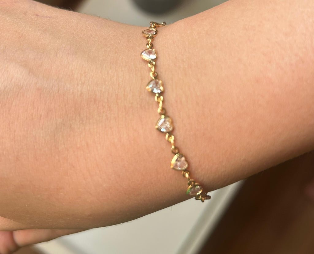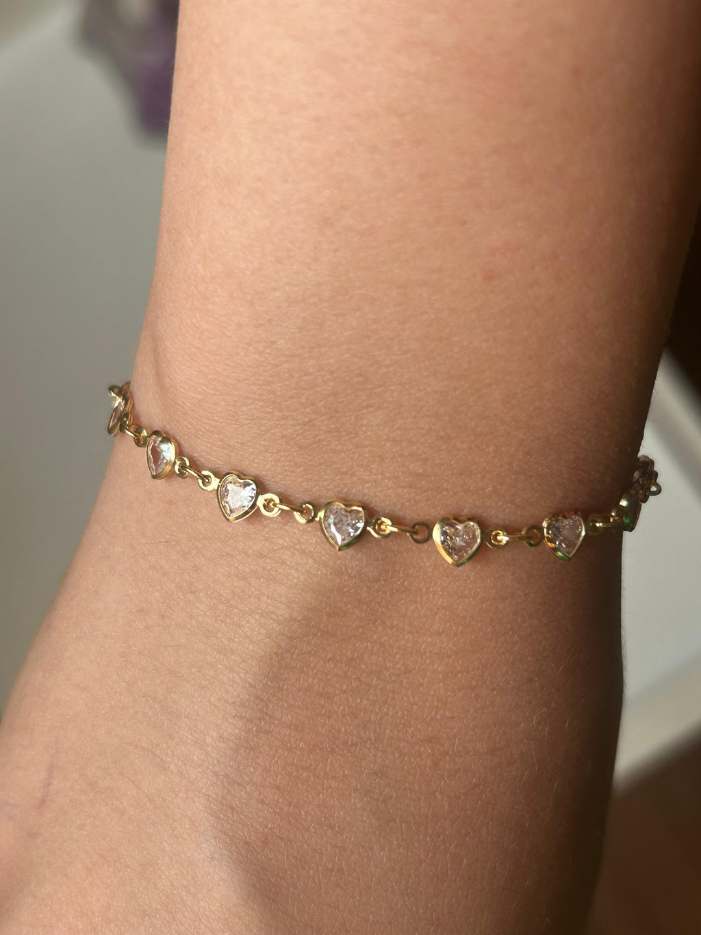 Pulseira Mini Corações de Cristais Banhado a Ouro 18k