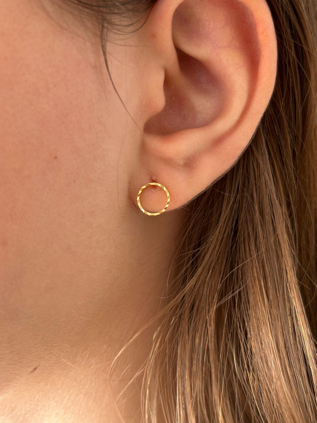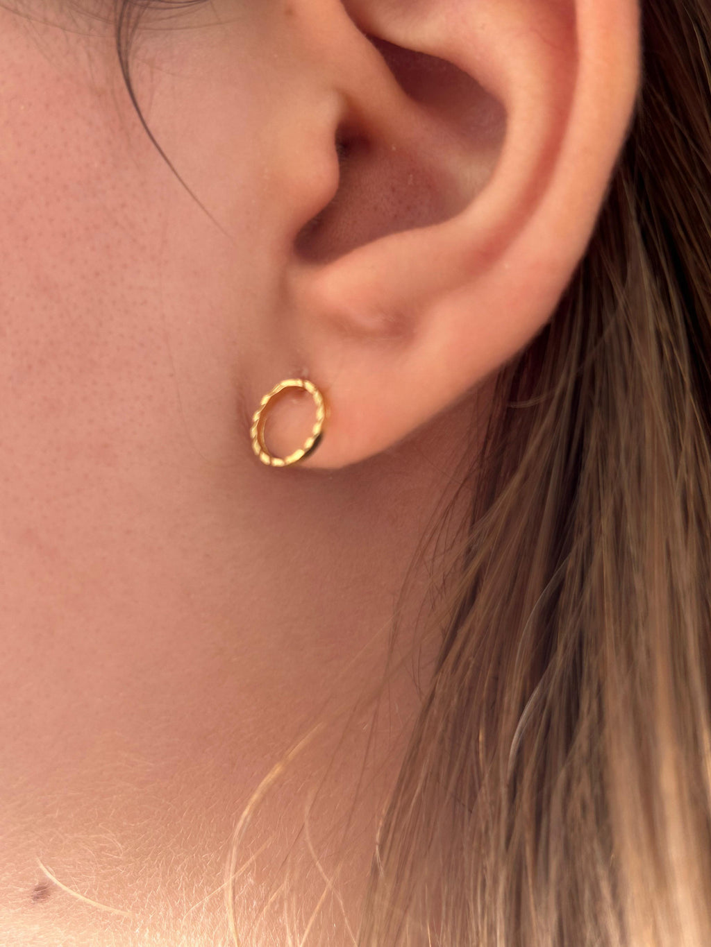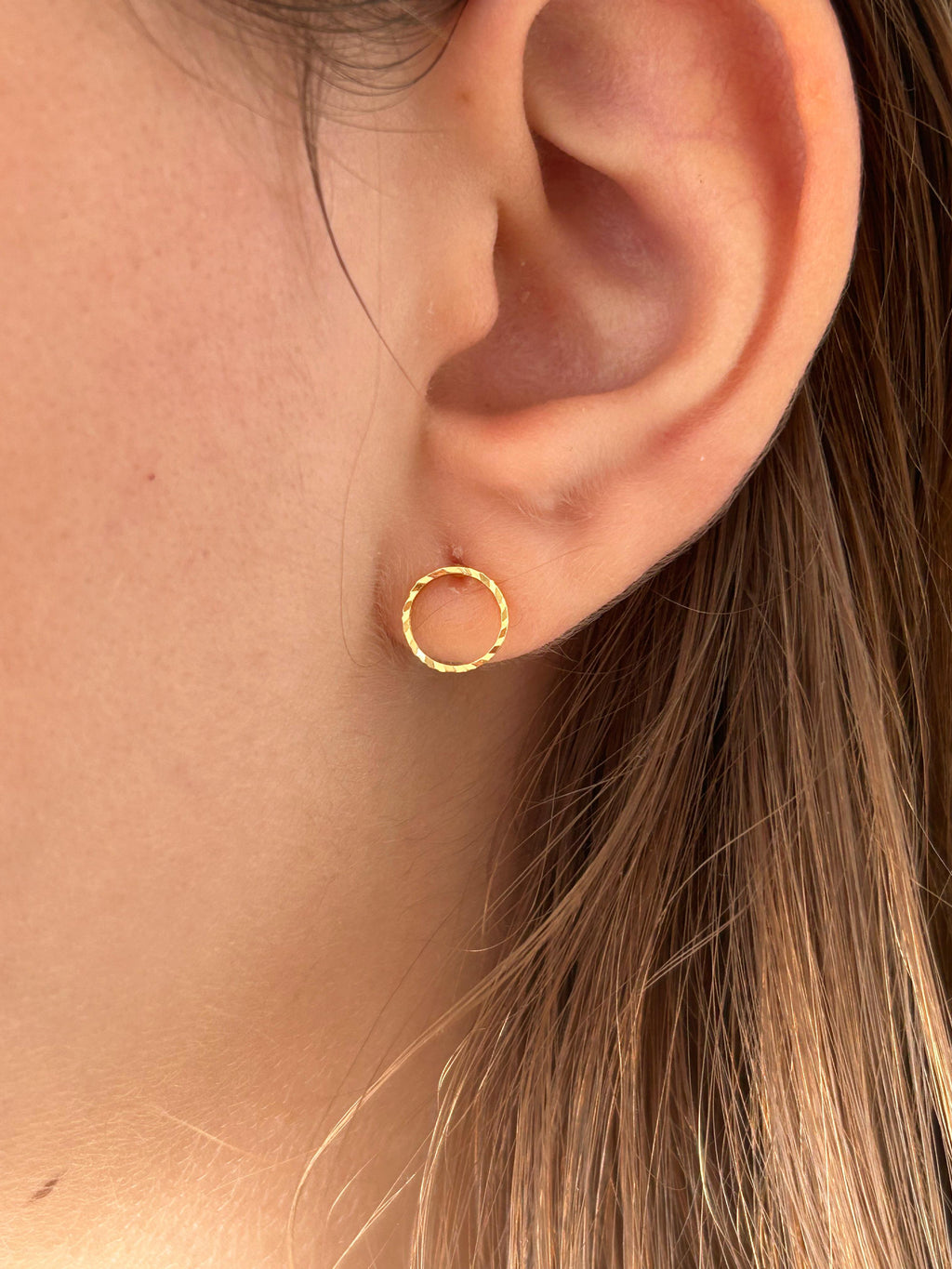 Banhado em ouro 18k, com delicado aro fixo de formato em zero escovado e bordas suaves. Design minimalista e versátil para compor looks com descrição e moda.